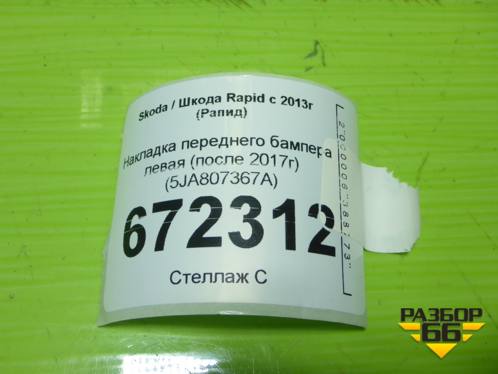 Накладка переднего бампера левая (после 2017г) (5JA807367A) для Skoda Rapid с 2013г (Рапид) в Тюмени