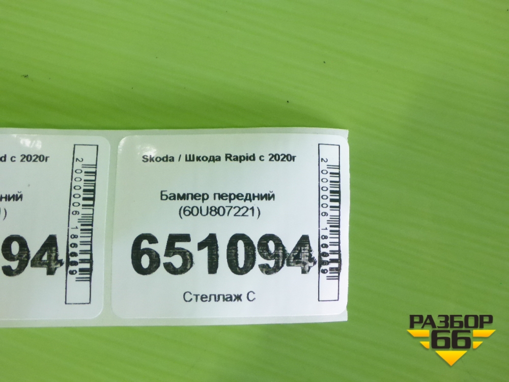 Бампер передний (60U807221) для Skoda Rapid с 2020г (Рапид) в Тюмени