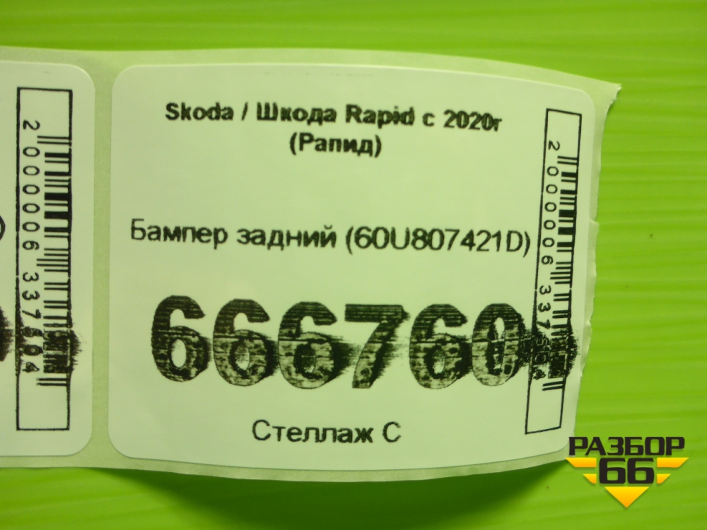 Бампер задний (60U807421D) для Skoda Rapid с 2020г (Рапид) в Тюмени