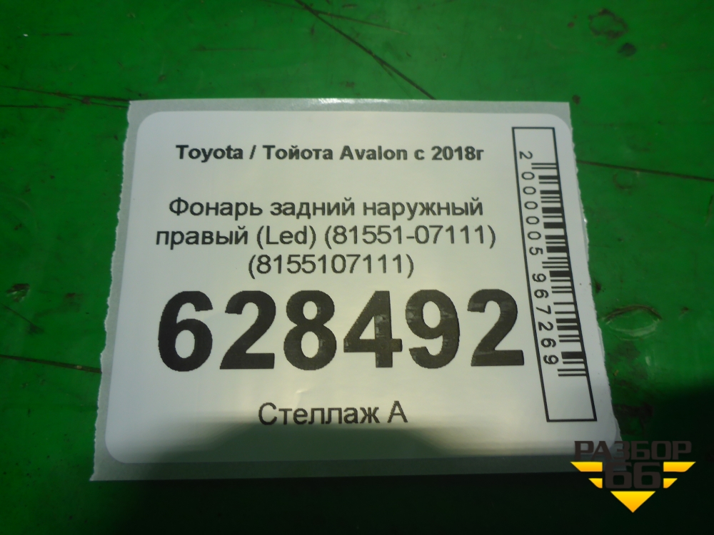 Фонарь задний наружный правый (Led) (8155107111) для Toyota Avalon с 2018г (Авалон) в Тюмени