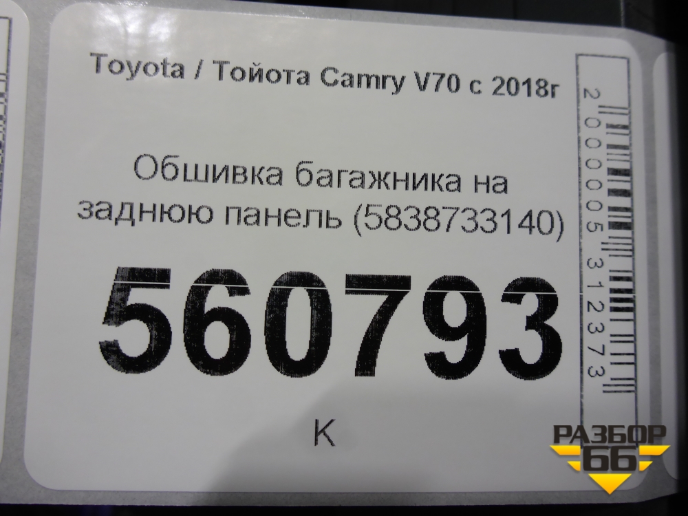 Обшивка багажника на заднюю панель (5838733140) для Toyota Camry V70 с 2017г (Камри) в Тюмени