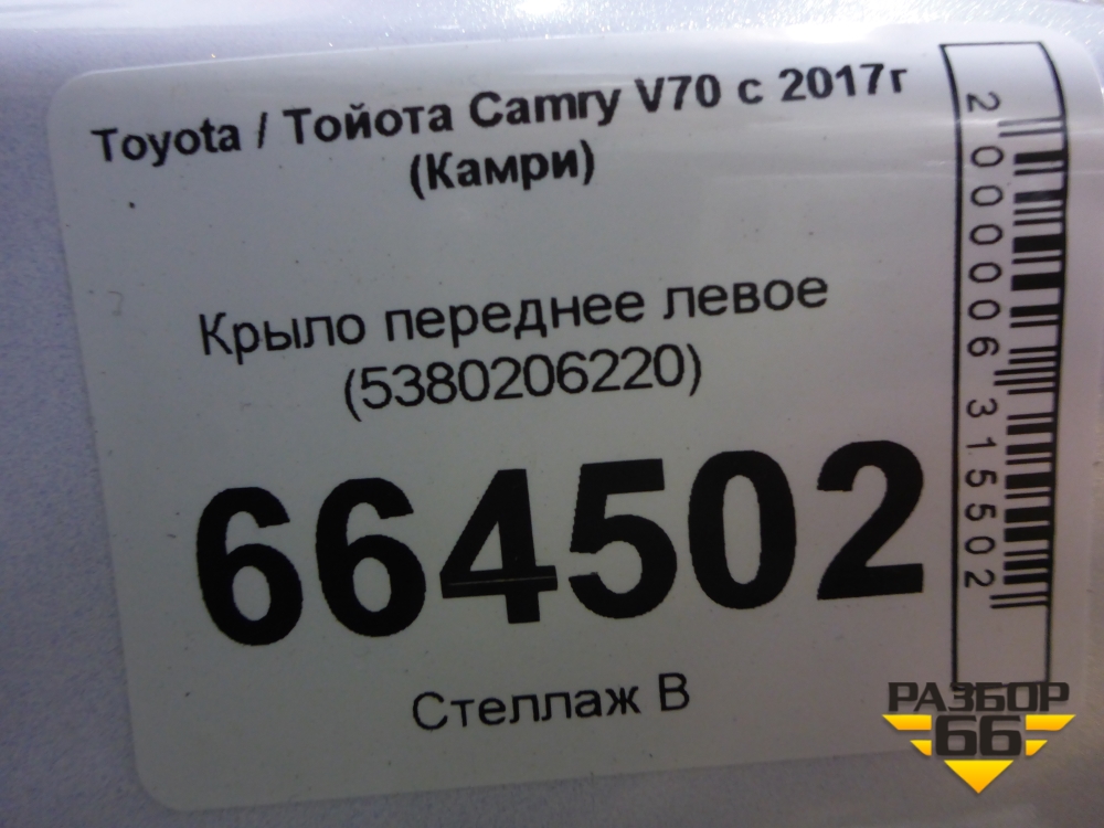 Крыло переднее левое (5380206220) для Toyota Camry V70 с 2017г (Камри) в Тюмени