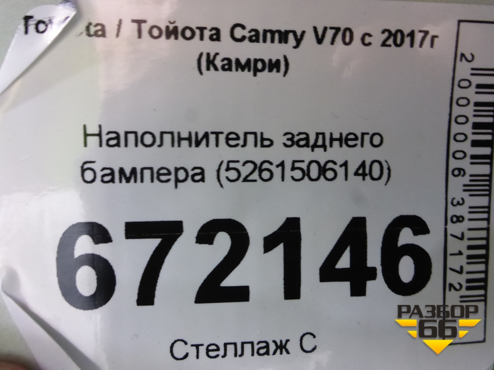 Наполнитель заднего бампера (5261506140) для Toyota Camry V70 с 2017г (Камри) в Тюмени