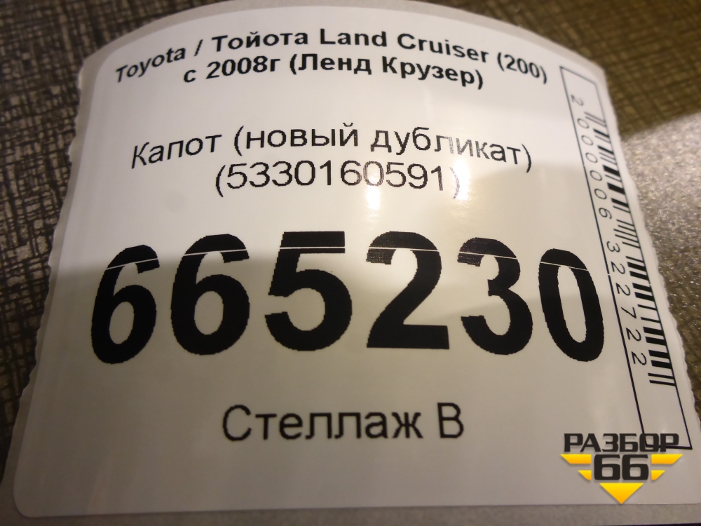 Капот (новый дубликат) (5330160591) для Toyota Land Cruiser (200) с 2008г (Ленд Крузер) в Тюмени