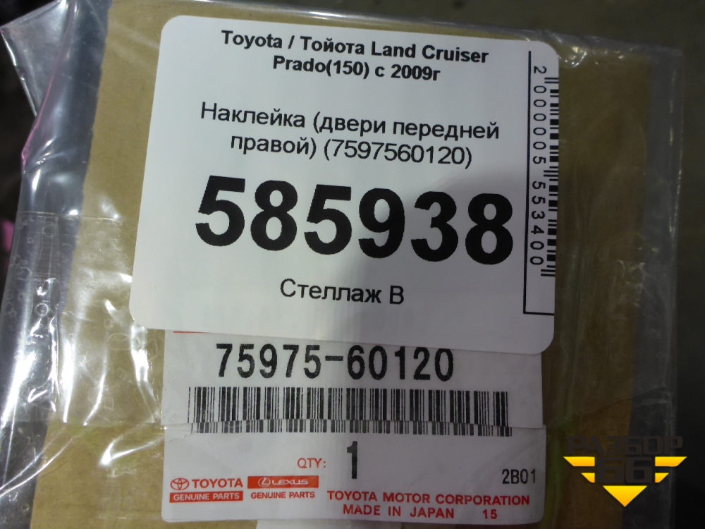 Наклейка (двери передней правой на рамку) (7597560120) для Toyota Land Cruiser Prado(150) с 2009г (Ленд Крузер Прадо) в Тюмени