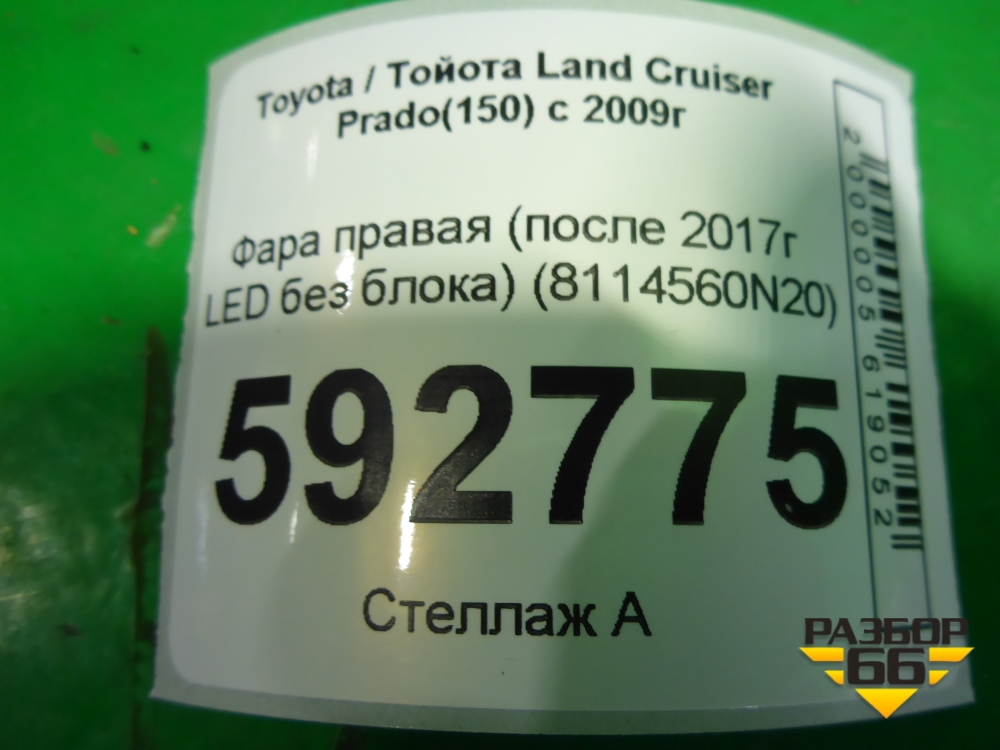 Фара правая (после 2017г LED без блока) (8114560N20) для Toyota Land Cruiser Prado(150) с 2009г (Ленд Крузер Прадо) в Тюмени