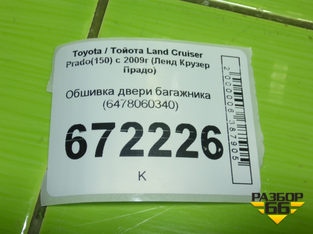 Обшивка двери багажника (6478060340) для Toyota Land Cruiser Prado(150) с 2009г (Ленд Крузер Прадо) в Тюмени