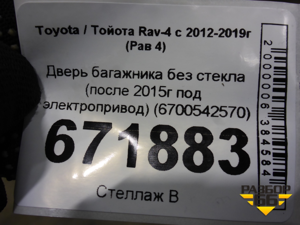 Дверь багажника без стекла (после 2015г под электропривод) (6700542570) для Toyota Rav-4 с 2012-2019г (Рав 4) в Тюмени