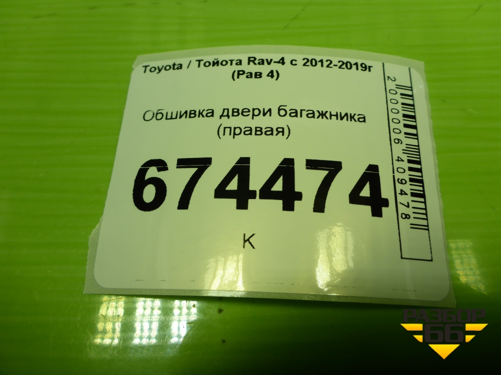 Обшивка двери багажника (правая) (6793742050) для Toyota Rav-4 с 2012-2019г (Рав 4) в Тюмени