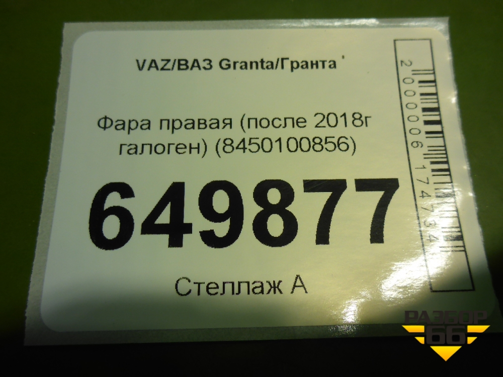 Фара правая (после 2018г галоген Дубликат Component) (8450100856) для VAZ Granta/Гранта в Тюмени