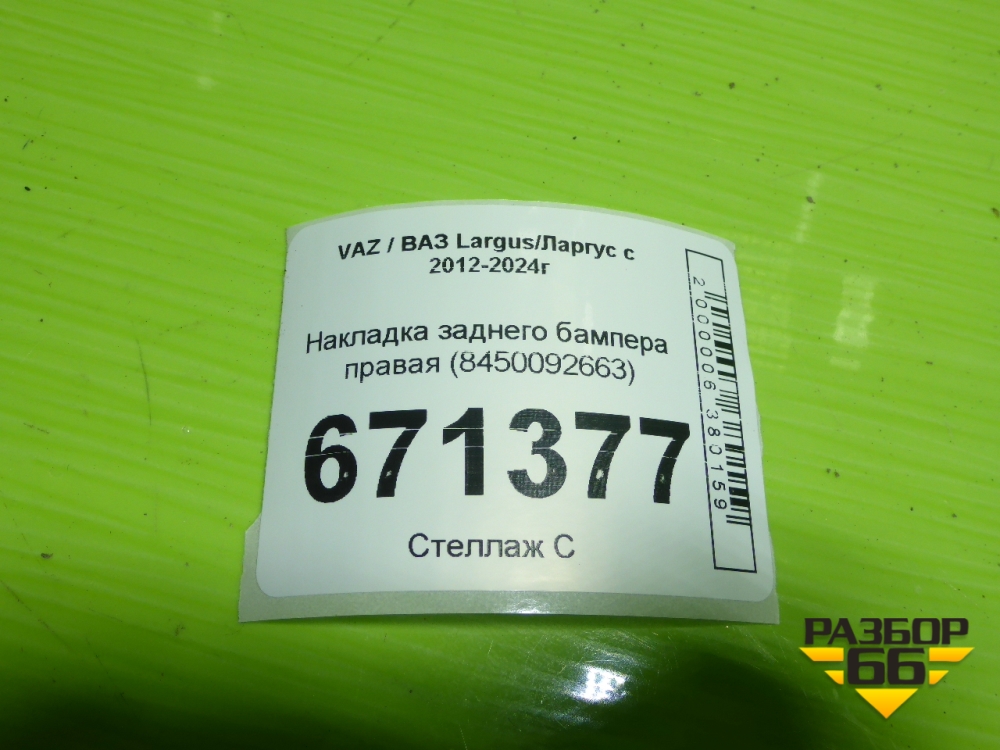 Накладка заднего бампера правая (8450092663) для VAZ Largus/Ларгус с 2012-2024г в Тюмени