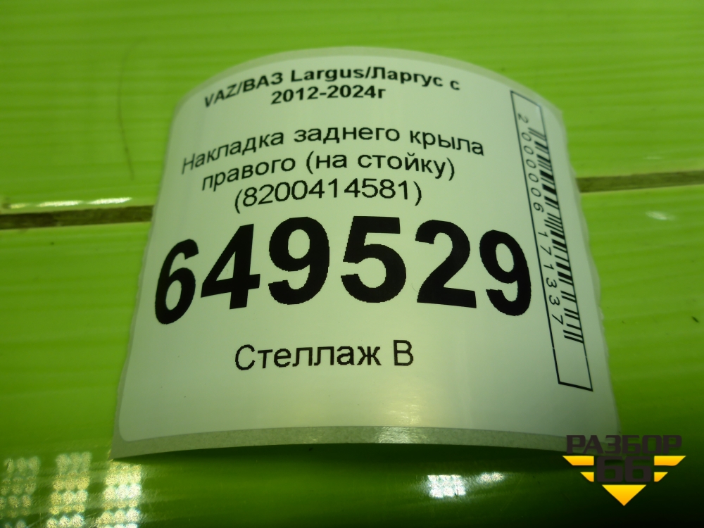 Накладка заднего крыла правого (на стойку) (8200414581) для VAZ Largus/Ларгус с 2012-2024г в Тюмени