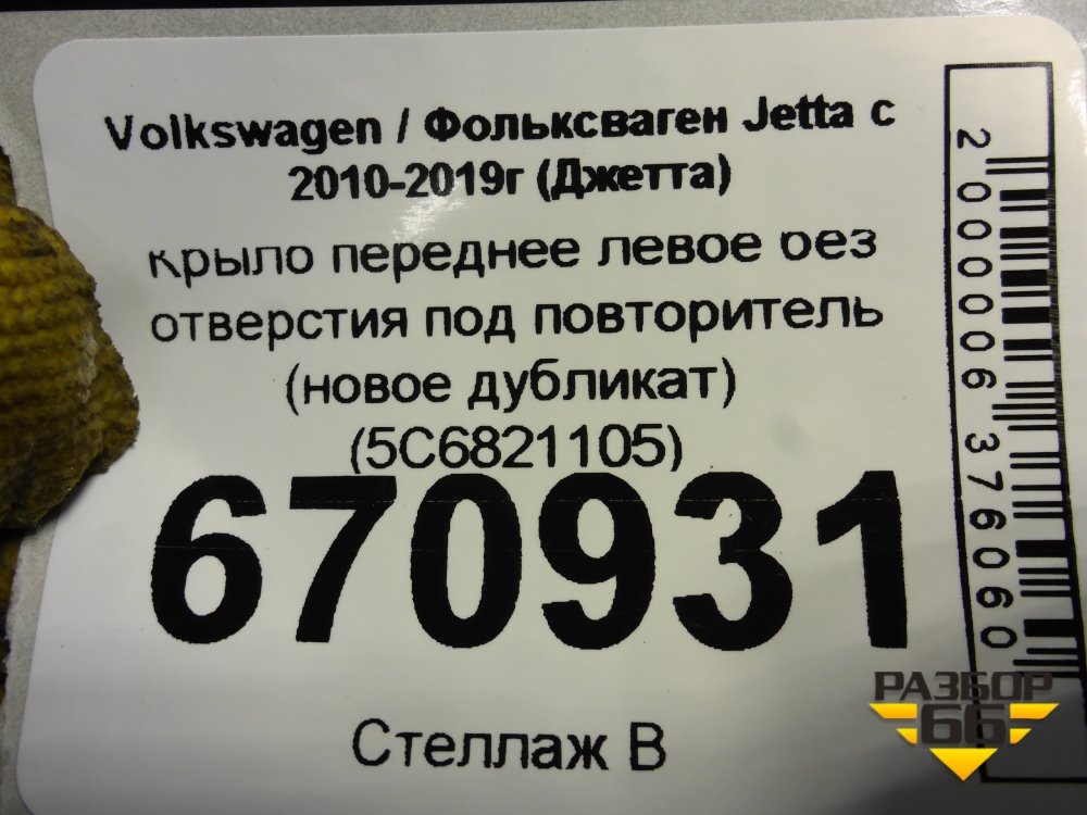Крыло переднее левое без отверстия под повторитель (новое дубликат) (5С6821105) для Volkswagen Jetta с 2010-2019г (Джетта) в Тюмени