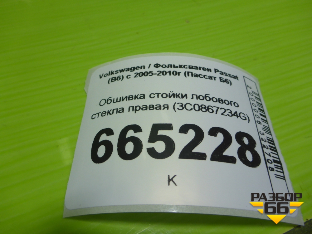 Обшивка стойки лобового стекла правая (3C0867234G) для Volkswagen Passat (B6) с 2005-2010г (Пассат Б6) в Тюмени