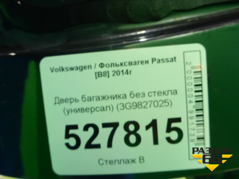 Дверь багажника без стекла (универсал) (3G9827025) для Volkswagen Passat [B8] 2014-2024г (Пассат Б8) в Тюмени