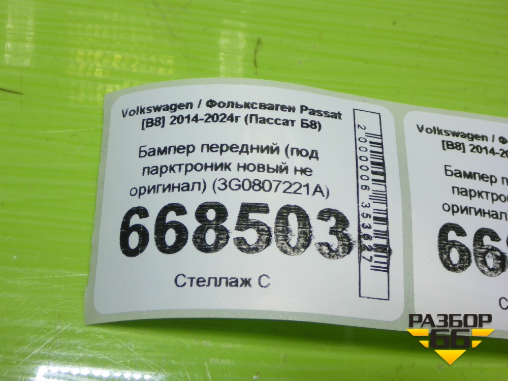 Бампер передний (под парктроник новый не оригинал) (3G0807221A) для Volkswagen Passat [B8] 2014-2024г (Пассат Б8) в Тюмени
