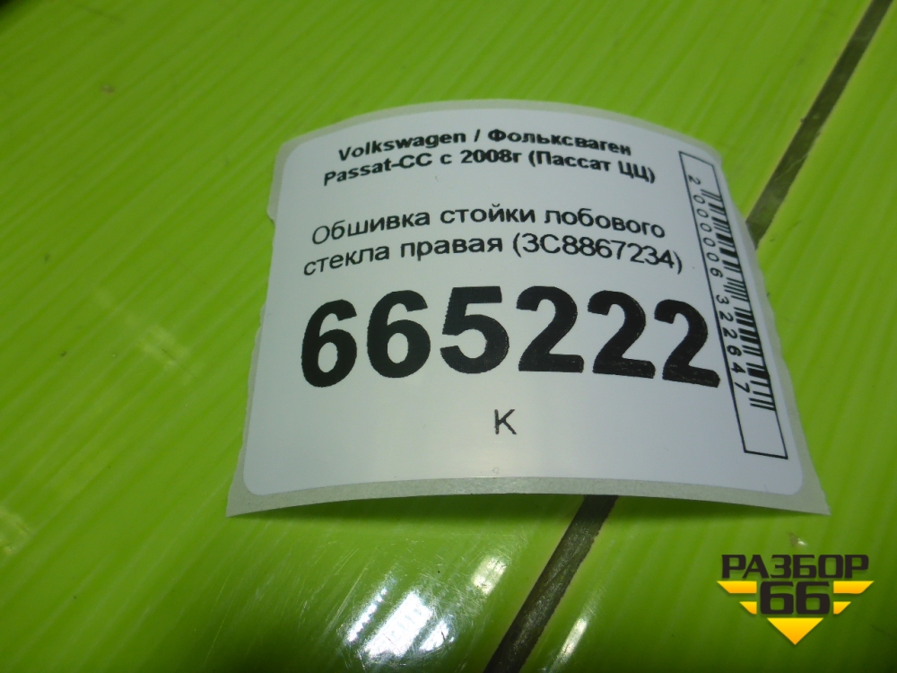 Обшивка стойки лобового стекла правая (3C8867234) для Volkswagen Passat-CC с 2008г (Пассат ЦЦ) в Тюмени