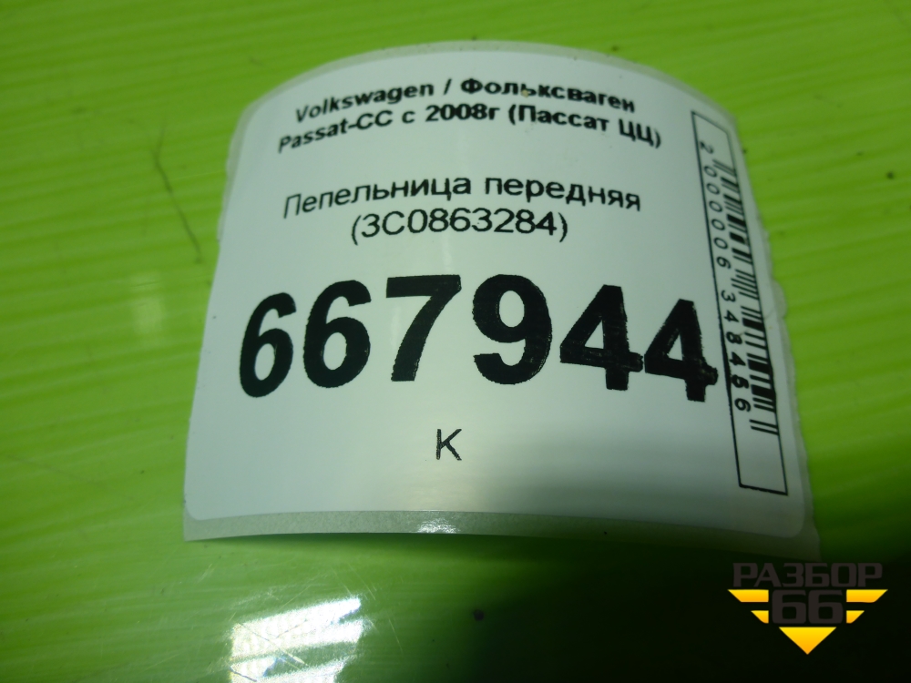 Пепельница передняя (3C0863284) для Volkswagen Passat-CC с 2008г (Пассат ЦЦ) в Тюмени