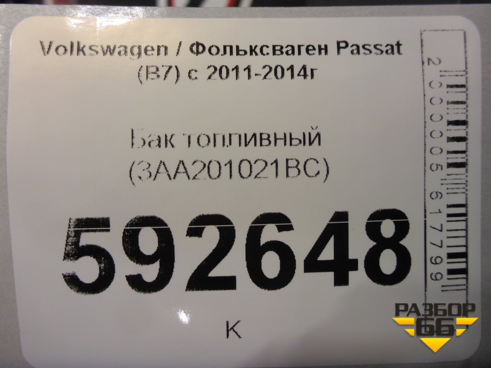 Бак топливный (бензин) (3AA201021BC) для Volkswagen Passat (В7) с 2011-2014г (Пассат Б7) в Тюмени