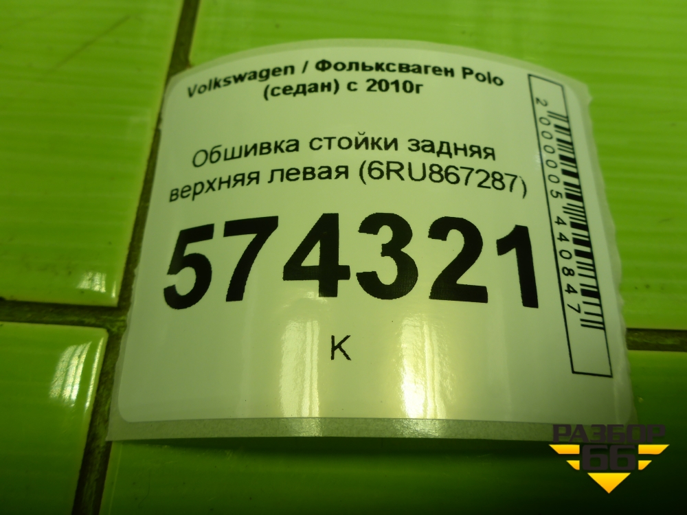 Обшивка стойки задняя верхняя левая (6RU867287) для Volkswagen Polo (седан) с 2010г (Поло) в Тюмени