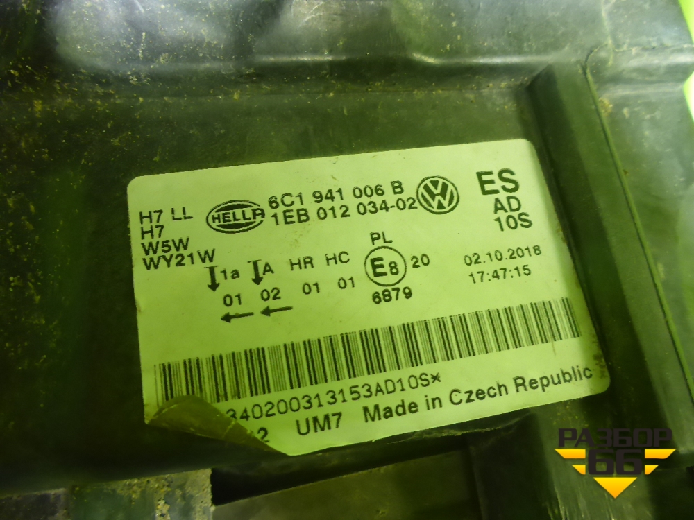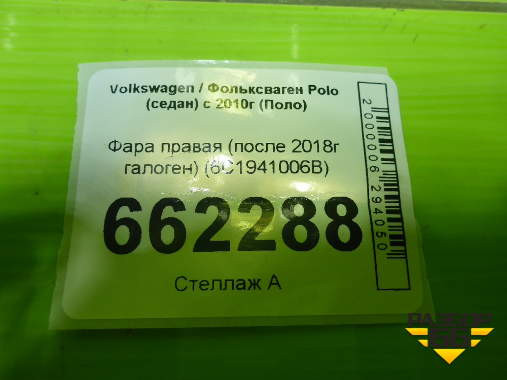 Фара правая (после 2018г галоген) (6C1941006B) для Volkswagen Polo (седан) с 2010г (Поло) в Тюмени