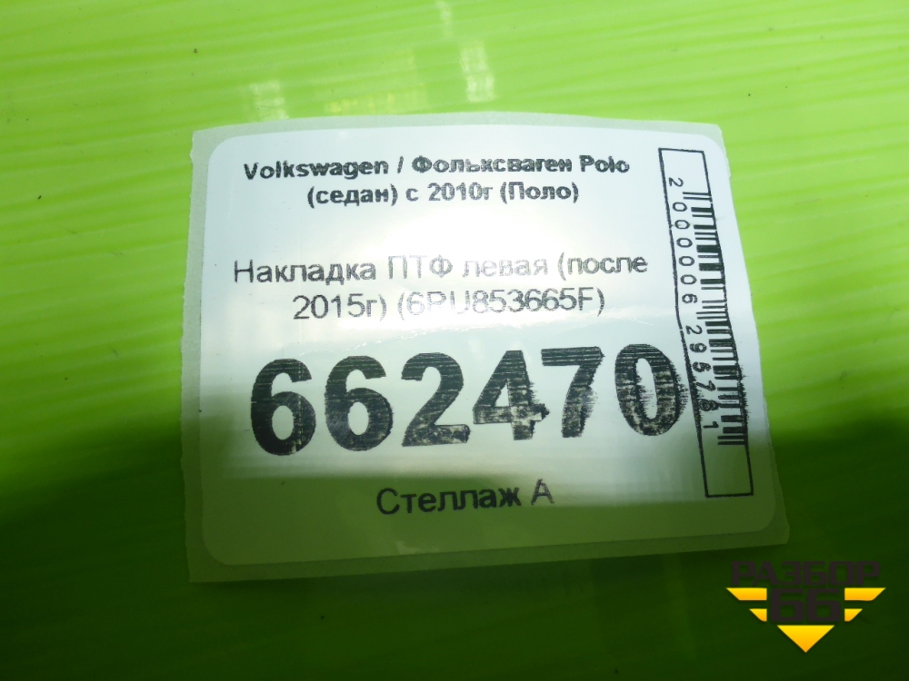 Накладка ПТФ левая (после 2015г) (6RU853665F) для Volkswagen Polo (седан) с 2010г (Поло) в Тюмени