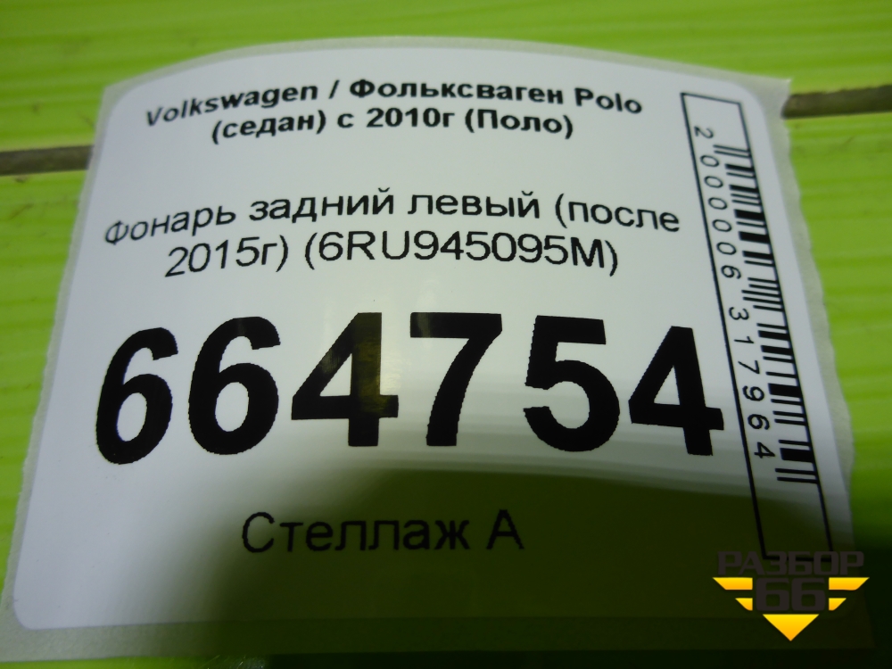 Фонарь задний левый (после 2015г) (6RU945095M) для Volkswagen Polo (седан) с 2010г (Поло) в Тюмени