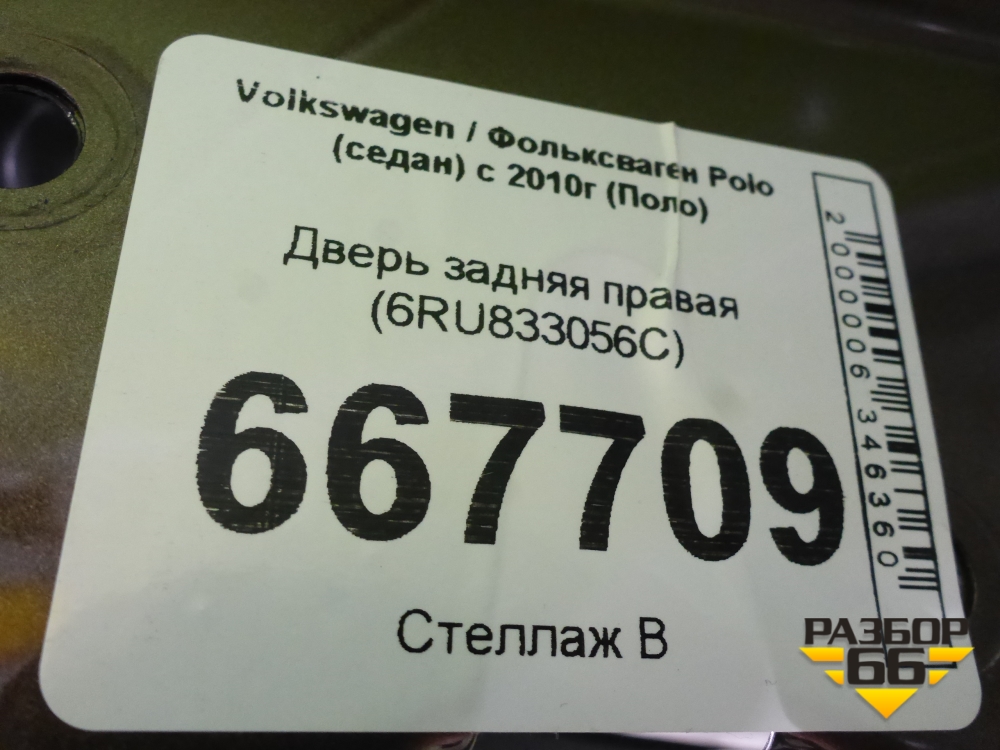 Дверь задняя правая (6RU833056C) для Volkswagen Polo (седан) с 2010г (Поло) в Тюмени