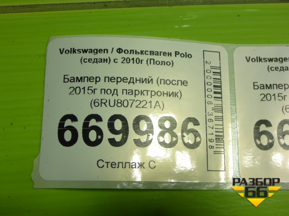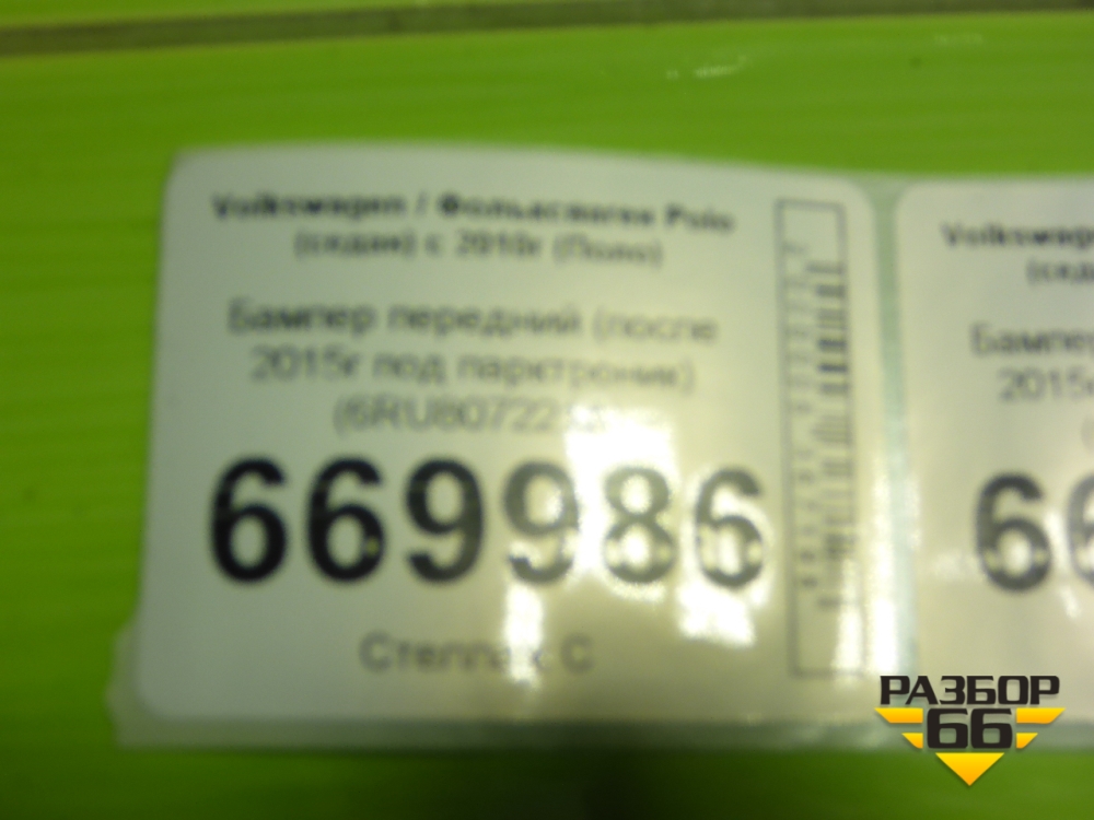 Бампер передний (после 2015г под парктроник) (6RU807221A) для Volkswagen Polo (седан) с 2010г (Поло) в Тюмени