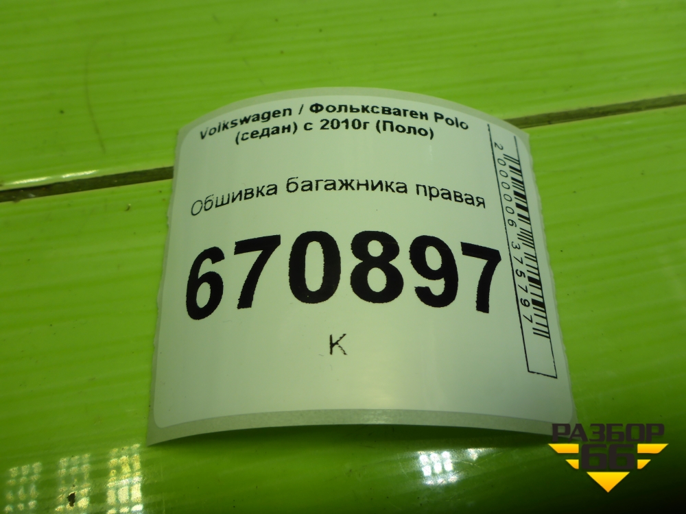 Обшивка багажника правая для Volkswagen Polo (седан) с 2010г (Поло) в Тюмени