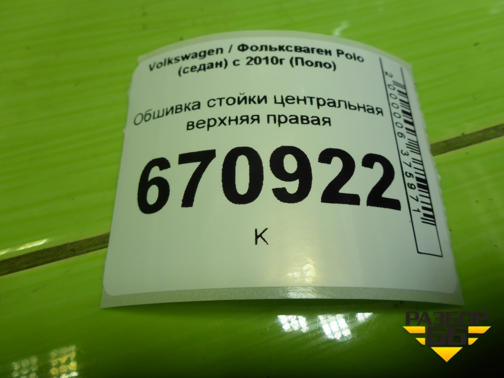 Обшивка стойки центральная верхняя правая (6RU867244E) для Volkswagen Polo (седан) с 2010г (Поло) в Тюмени