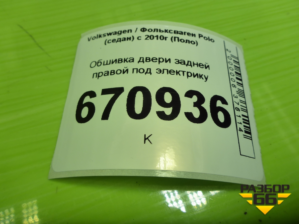 Обшивка двери задней правой под электрику (6RU867212) для Volkswagen Polo (седан) с 2010г (Поло) в Тюмени