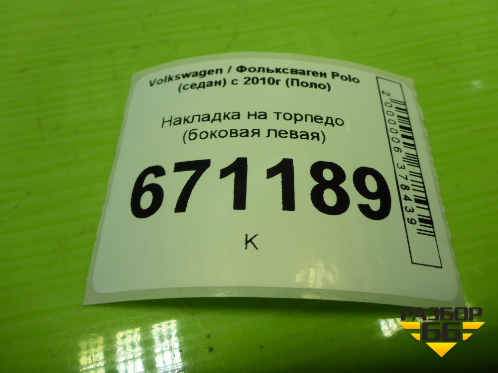 Накладка на торпедо (боковая левая) (6RU858247D) для Volkswagen Polo (седан) с 2010г (Поло) в Тюмени