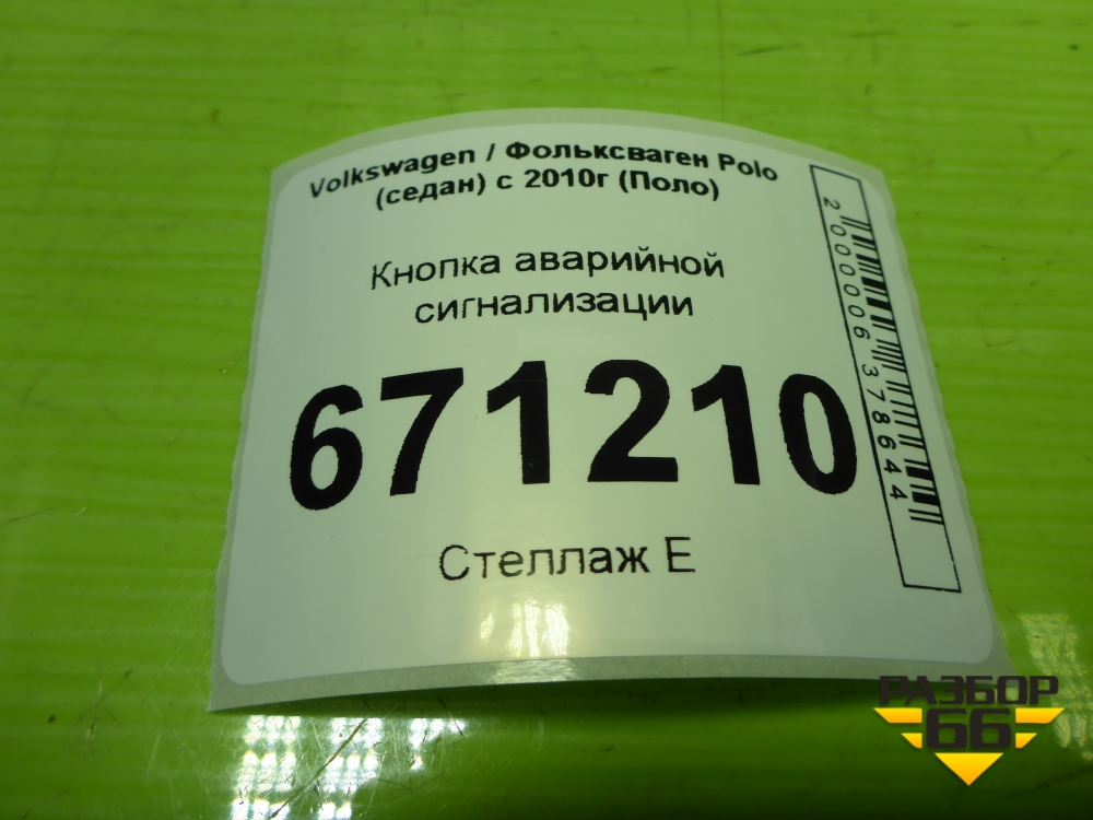 Кнопка аварийной сигнализации (6R0953509B) для Volkswagen Polo (седан) с 2010г (Поло) в Тюмени
