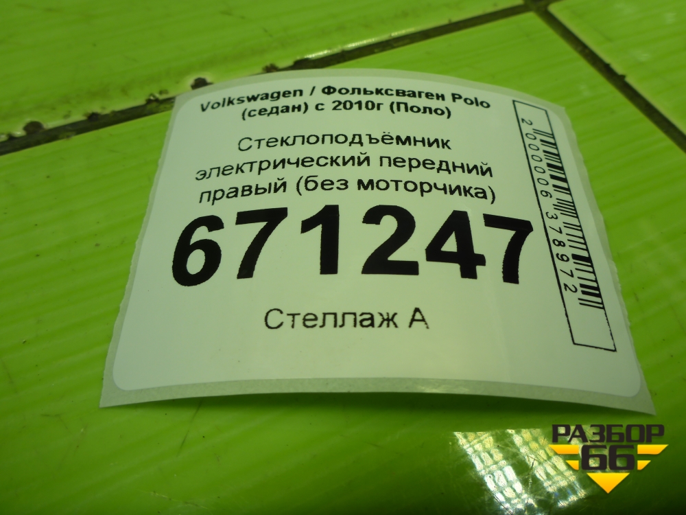 Стеклоподъёмник электрический передний правый (без моторчика) (6RU837462M) для Volkswagen Polo (седан) с 2010г (Поло) в Тюмени