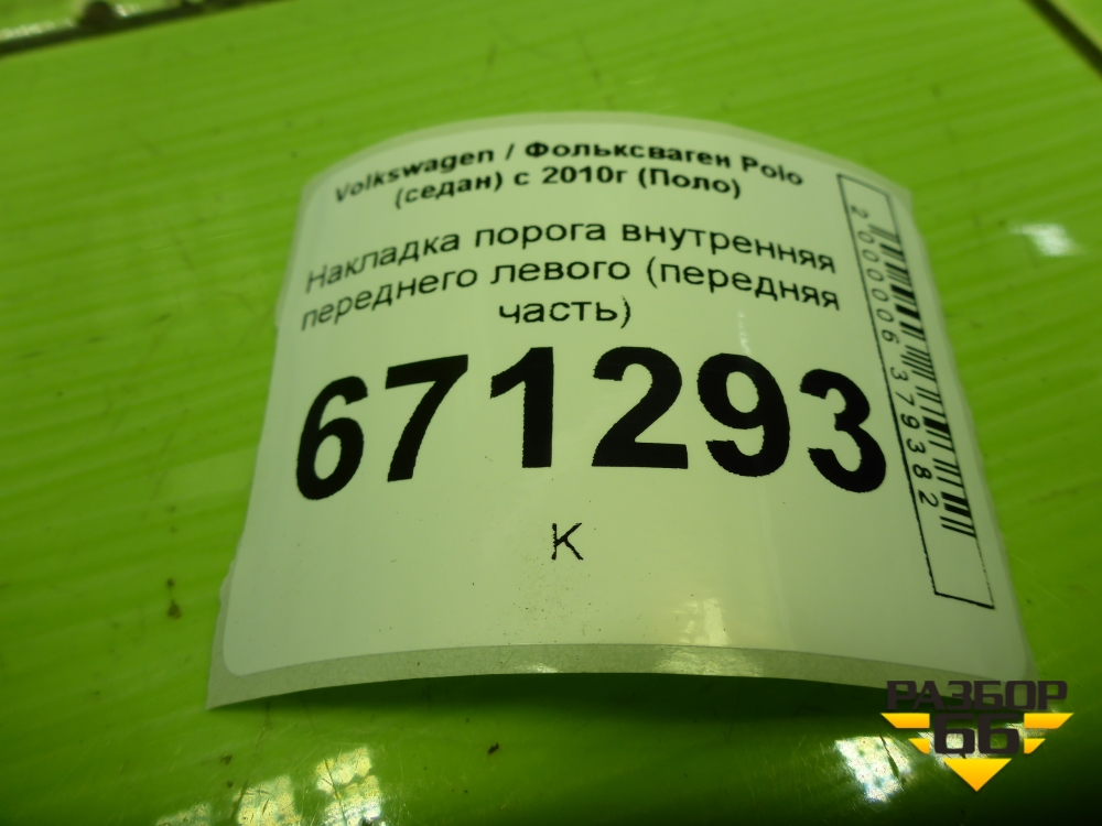 Накладка порога внутренняя переднего левого (передняя часть) (6RU863483) для Volkswagen Polo (седан) с 2010г (Поло) в Тюмени