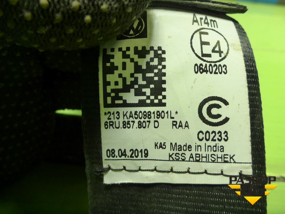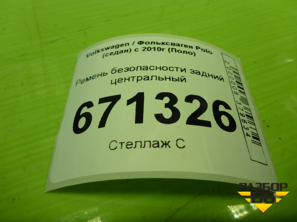 Ремень безопасности задний центральный (6RU857807D) для Volkswagen Polo (седан) с 2010г (Поло) в Тюмени