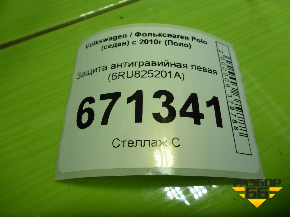 Защита антигравийная левая (6RU825201A) для Volkswagen Polo (седан) с 2010г (Поло) в Тюмени
