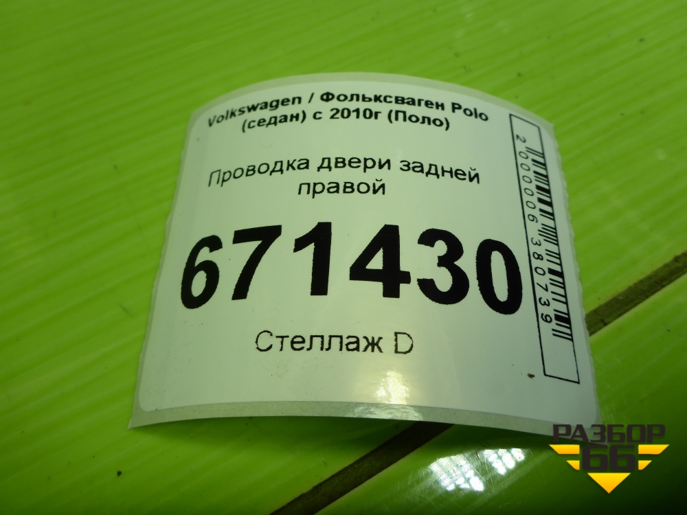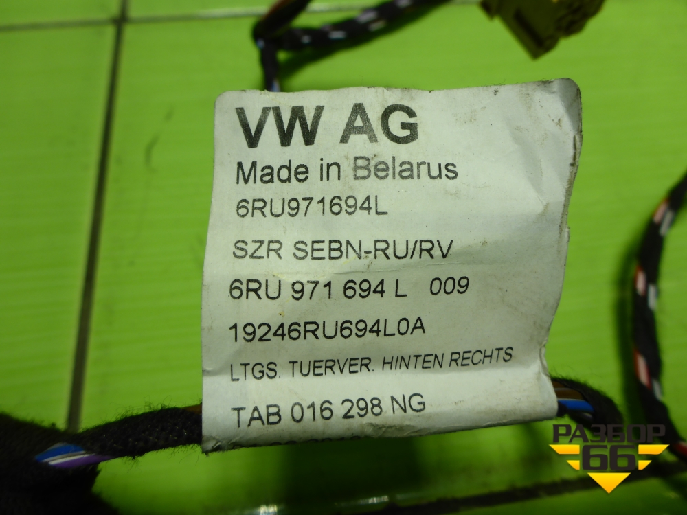 Проводка двери задней правой (6RU971694L) для Volkswagen Polo (седан) с 2010г (Поло) в Тюмени