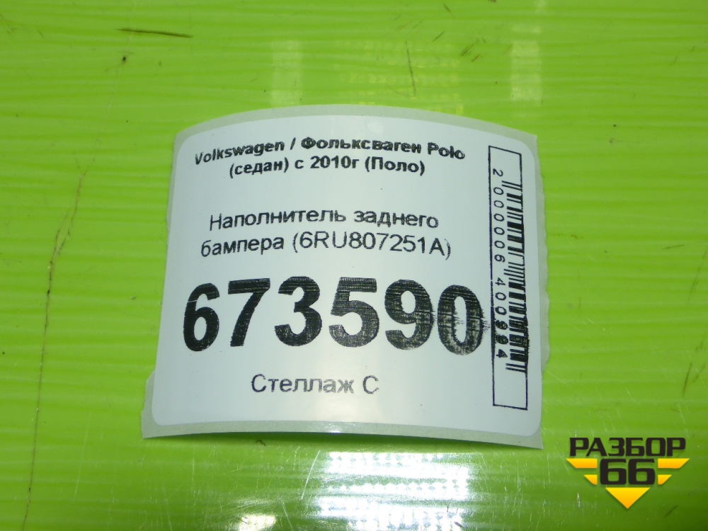 Наполнитель заднего бампера (6RU807251A) для Volkswagen Polo (седан) с 2010г (Поло) в Тюмени