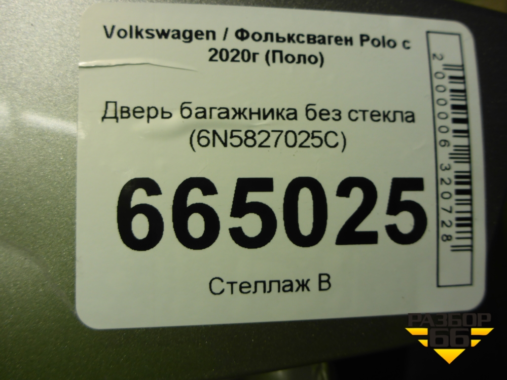 Дверь багажника без стекла (6N5827025C) для Volkswagen Polo с 2020г (Поло) в Тюмени