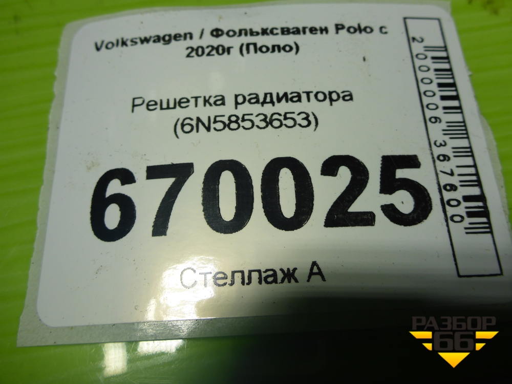 Решетка радиатора (6N5853653) для Volkswagen Polo с 2020г (Поло) в Тюмени