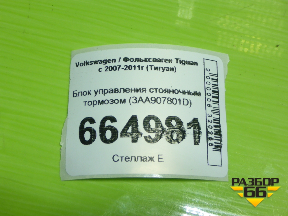 Блок управления стояночным тормозом (3AA907801D) для Volkswagen Tiguan с 2007-2011г (Тигуан) в Тюмени