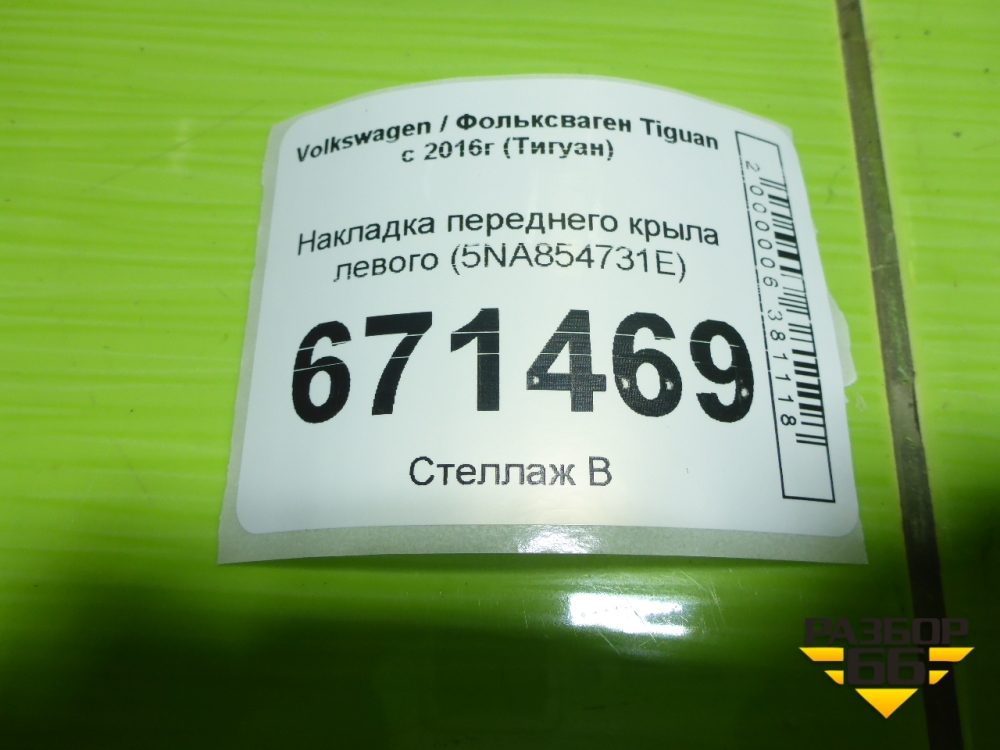 Накладка переднего крыла левого (5NA854731E) для Volkswagen Tiguan с 2016г (Тигуан) в Тюмени