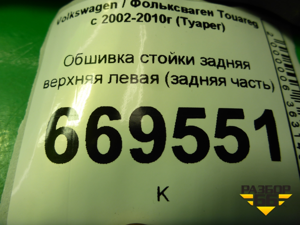Обшивка стойки задняя верхняя левая (задняя часть) (7L6867245) для Volkswagen Touareg c 2002-2010г (Туарег) в Тюмени
