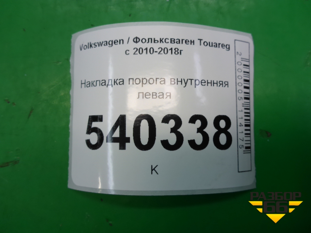 Накладка порога внутренняя левая (7P0853369H) для Volkswagen Touareg с 2010-2018г (Туарег) в Тюмени