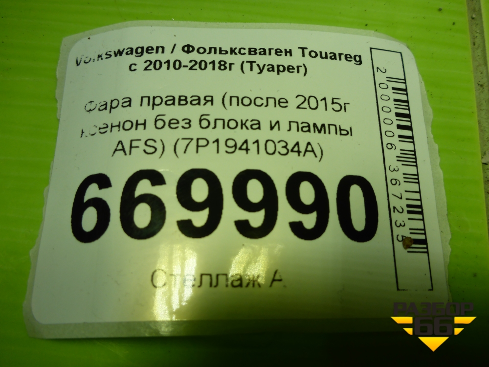 Фара правая (после 2015г ксенон без блока и лампы AFS) (7P1941034A) для Volkswagen Touareg с 2010-2018г (Туарег) в Тюмени