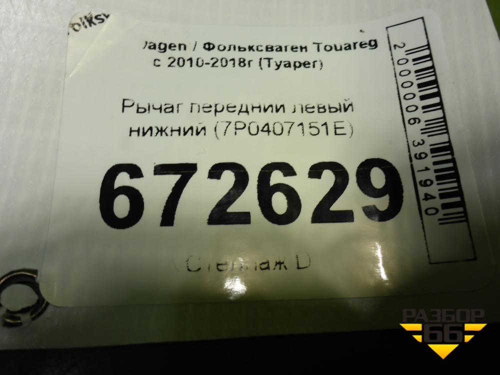 Рычаг передний левый нижний (7P0407151E) для Volkswagen Touareg с 2010-2018г (Туарег) в Тюмени