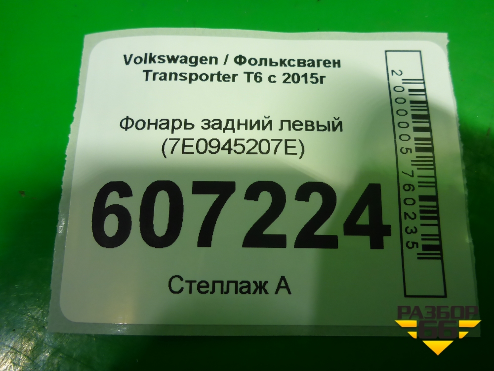 Фонарь задний левый (7E0945207E) для Volkswagen Transporter T6 с 2015г (Транспортер Т6) в Тюмени
