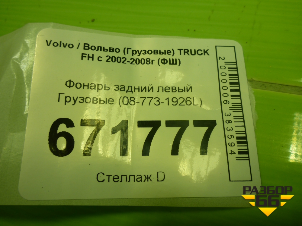 Фонарь задний левый (08-773-1926L) для Volvo TRUCK FH с 2002-2008г (ФШ) в Тюмени